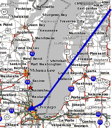 Data collected 6 February 2001 from about 1320 - 1345 CST on approach to ORD. Plane traveling about 200 mph from NE (across Lake Michigan to ORD). Observations about 1 minute apart. |