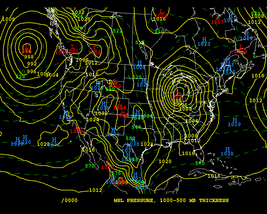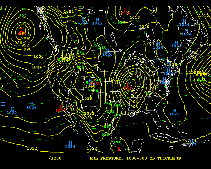 Techniques to determine where surface pressures will rise or fall have been around for many years. Basically, one can use the QG omega equation to get a good idea of where pressures will rise or fall. They fall (rise) due to the same processes producing upward (downward) motion. Thus, look for pressure falls in regions of upper-level CVA and warm advection. Downslope or upslope flow often is a major player in influencing surface pressure as well.Lab 10 exercise mapsLab 10 extra questions |