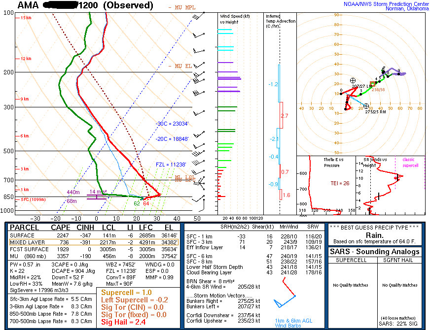 Amarillo, TX skew-T - 12 Z