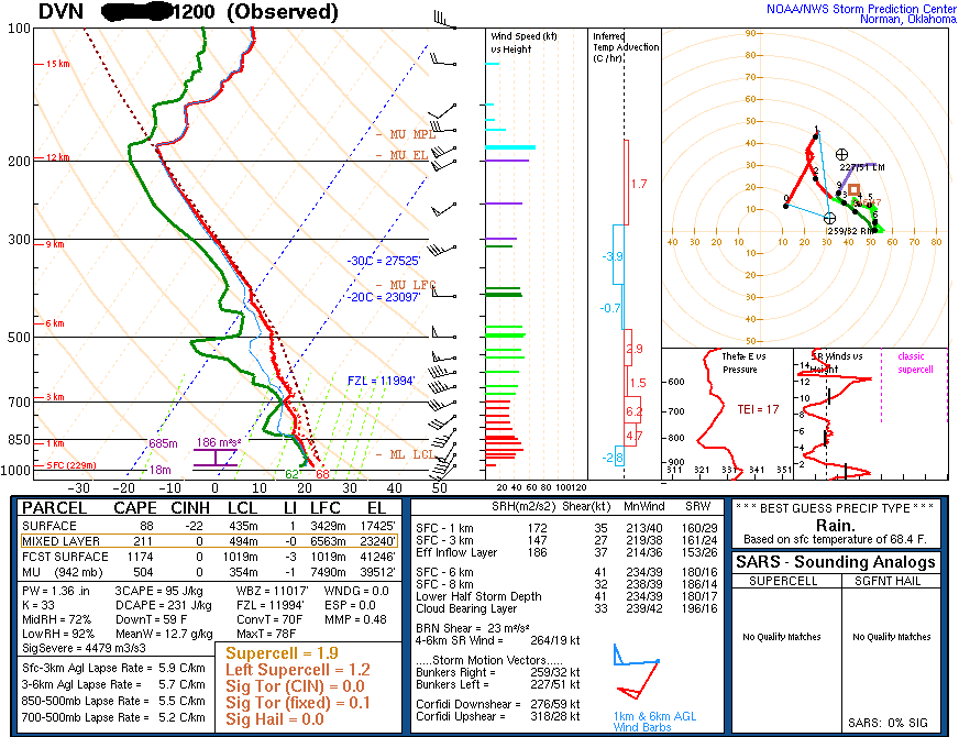 Davenport, IA skew-T - 12 Z