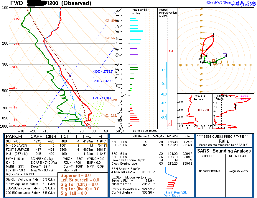 Fort Worth, TX skew-T - 12 Z
