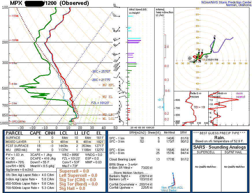 Minneapolis, MN skew-T - 12 Z