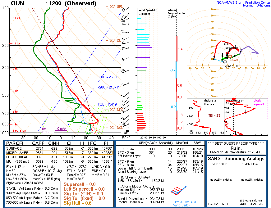 Norman, OK skew-T - 12 Z