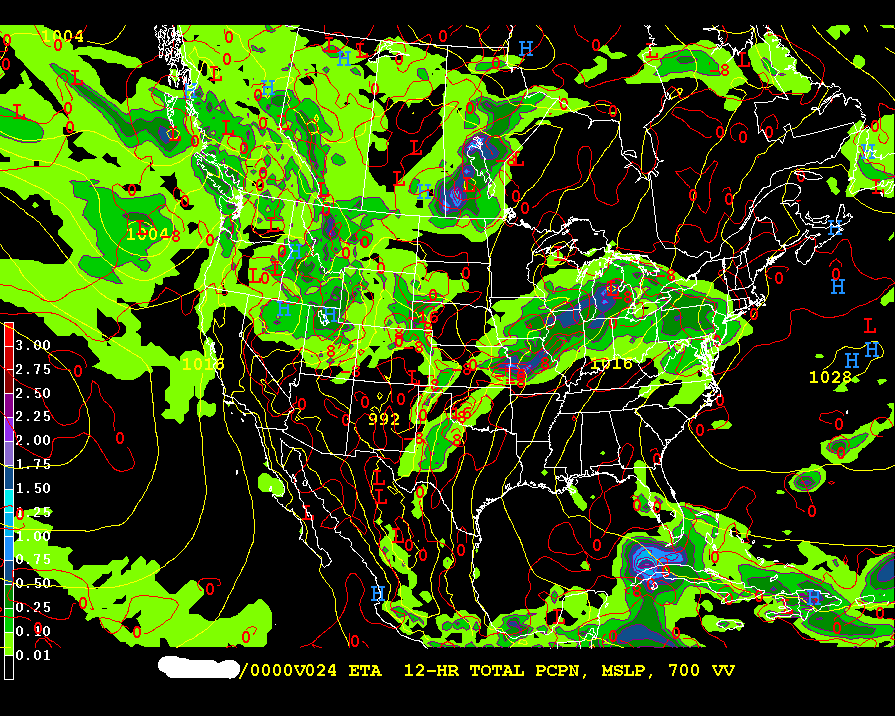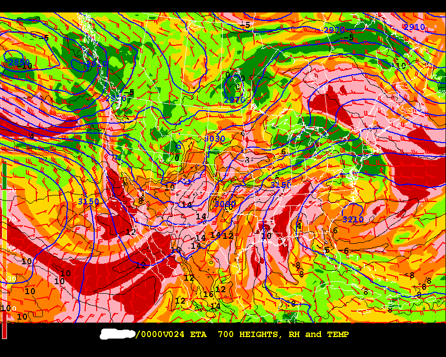 24h NAM prediction of 700mb - valid 00 Z