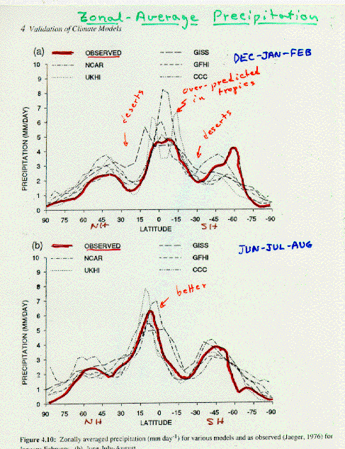Zonal-average precipitation. Adapted from Figure 4.10 IPCC, 1990.