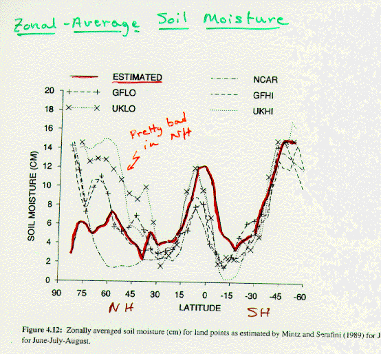 Zonal-average soil moisture. Adapted from Figure 4.12 IPCC, 1990.