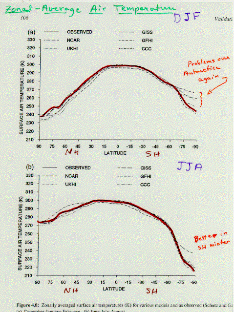 Zonal-average air temperature. Adapted from Figure 4.8 IPCC, 1990.