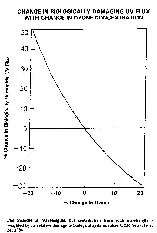 As stratospheric ozone is depleted, more energy in the UV-B range is allowed to pass though the stratosphere and troposphere and enter the biosphere - the sphere of plant, animal, marine, and soil organisms near the earth's surface (Figure 7).