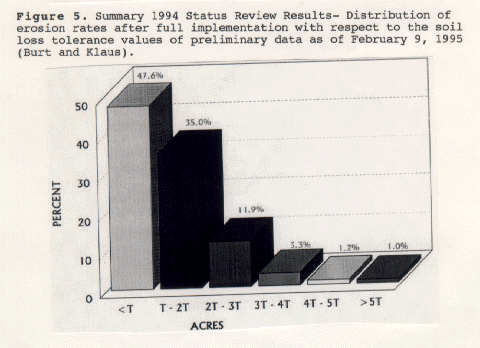 Figure 5. Summary 1994 Status Review Results- Distribution of erosion rates after full implementation with respect to the soil loss tolerance values of preliminary data as of February 9, 1995 (Burt and Klaus).
