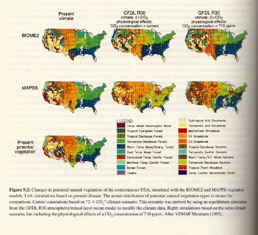 Simulated changes in equilibrium terrestrial carbon storage in the US.