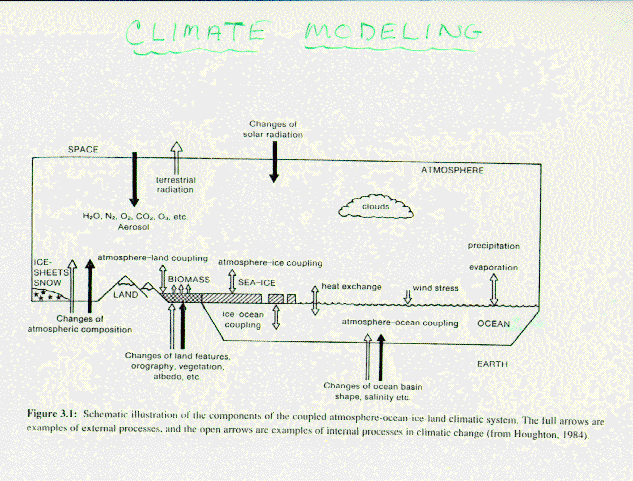 Hemos visto que hay consenso entre los científicos de que los procesos químicos han modificado la composición de la atmósfera. Hemos también estimado los cambios futuros en la composición de la atmósfera. Por ultimo revisamos el cambio en el forzante radiactivo, como consecuencia de distintos escenarios basados en políticas de generación y regulación de otras fuentes de gases de efecto de invernadero. El próximo paso es transformar estos cambios del forzante radiactivo, en cambios en el clima de la Tierra. Antes que nada veamos que entendemos por cambio climático. |