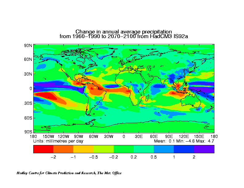 Regions of increased precipitation tend to be ocean areas. IPCC 1992.