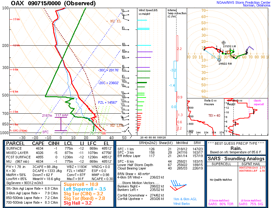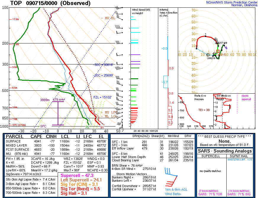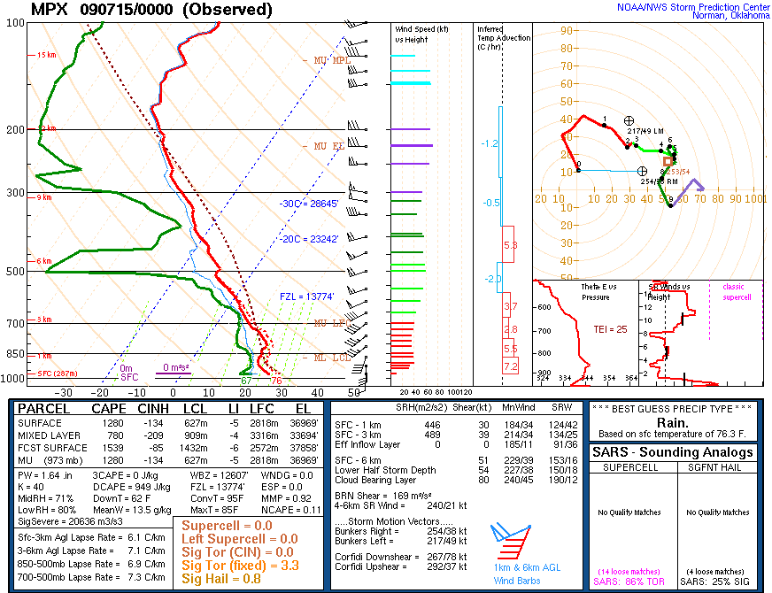 I need to learn that, in the warmer months of the year (i.e., chase season months minus April and early May), less instability does not mean insufficient instability. I completely overlooked northern Minnesota as a target because progged CAPE values were only going to be 1000-2000 J/kg. Oh well, wouldn't have been able to make it that far north anyway. We didn't leave until almost 2.