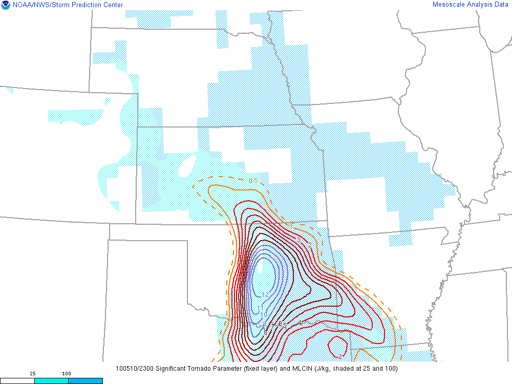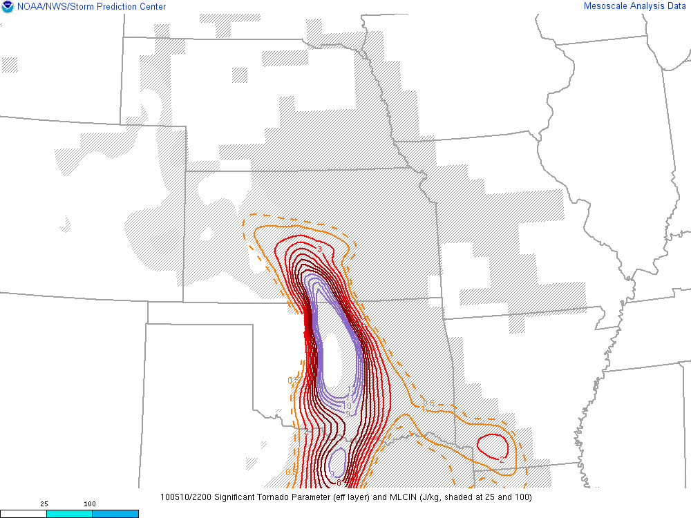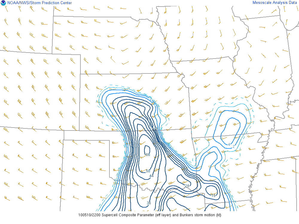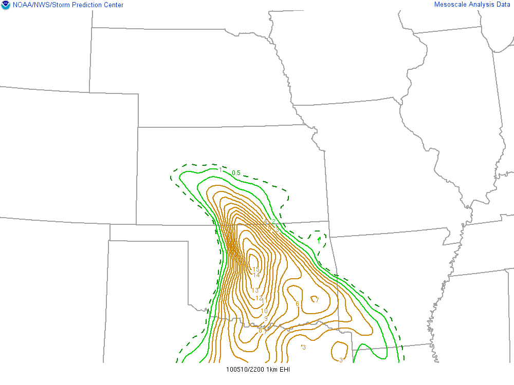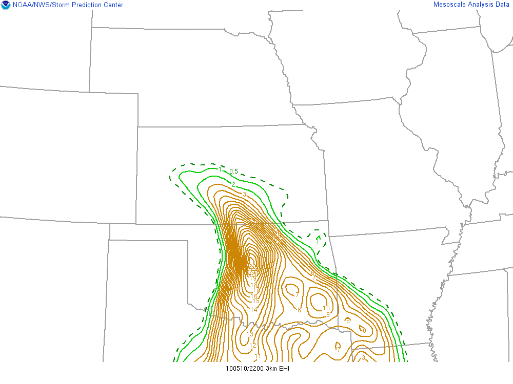 Ryan, Logan, and I left Ames at 9 AM and picked up Ricky in Des Moines on our way down I-35, with a general goal of Wichita or farther south/west by 4 PM. We were elated to see the PDS tornado watch issued. Things started happening earlier than anticipated, though. Leading up to this day, it looked like things were going to remain capped until late in the day, but the models trended towards a lessening cap as the day drew near. Thus initiation occurred earlier than had been previously predicted, and earlier than I had hoped. (One of my mistakes this day was not being ready to go until 9 AM. If only we had left 30 minutes earlier, perhaps things would've gone much better.) By the time we were screaming down the Kansas Turnpike, initiation had already occurred in northwest Oklahoma and southern/western Kansas. Two storms in particular had caught our attention: one was a developing monster supercell across the Oklahoma border, while the other was a storm to the north-northwest of the former one that looked less impressive, but was tornado warned for a time, and a storm for which we were better positioned to intercept. As we neared Wichita and had to make a decision as to what to do, the latter storm lost its tornado warning and began to look pretty crappy, and the monster supercell to our southwest continued to roar. Thus we made a decision to try to somehow get in front of that storm before it cut us off on I-35 (probably mistake number two for multiple reasons).