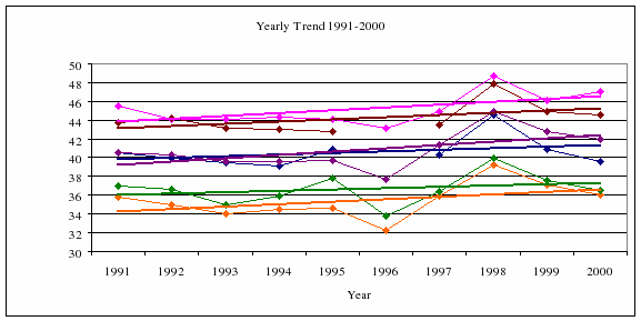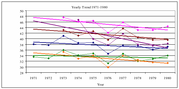 APPENDIX A6. 1961-1970 yearly means and linear fits